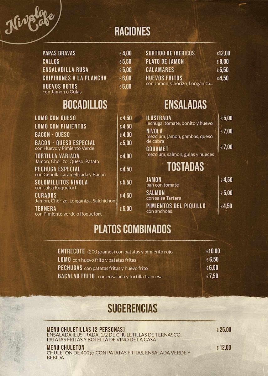 Nivola Cafe Menu